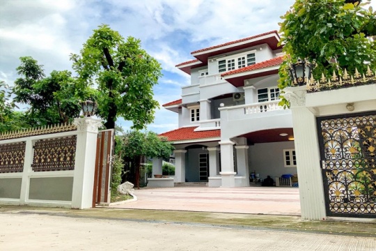 ขายบ้านเดี่ยว ใกล้เซ็นทรัล โรงเรียนรุ่งอรุณ พระราม 2 ห้องนอน 7 ห้อง (เรือนใหญ่ 4 ห้อง, เรือนคนใช้ 3 ห้อง) ห้องน้ำ 6 ห้อง (ชั้นบน 3 ห้อง, ชั้นล่าง 1 ห้อง, ส่วนเรือนคนใช้ 2 ห้อง)